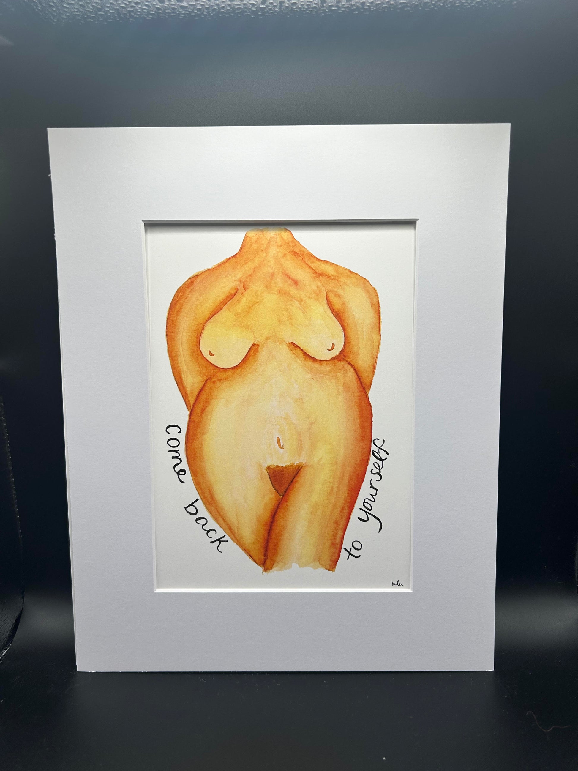 This beautiful watercolor print encapsulates feminine embodiment. It communicates deep self-love and inner trust, that anything is possible and that your power truly lies within. This print reminds all who see it that turning inward and deeply listening is of utmost importance.